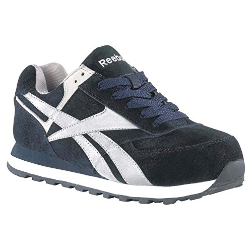 Studio : Reebok Publisher : Reebok Product Description Handsome suede leather tops this men's athletic style work shoe with brushed nylon lining. Comfort features include removable EVA cushioned insert with sponge rubber heel wedge, EVA cushioned midsole, and durable rubber outsole. Lightweight, flexible cement construction uses strong adhesives to bind upper and outsole together. Nonmetallic design helps reduce the possibility of marking or scratching work surfaces. Note: This footwear is designed to provide secondary protection from incidental contact with live electrical circuits. It meets F2413-11 Section 5.5 requirements and is tested to resist the application of 18, 000 volts at 60 Hz for 1 minute with no current flow in excess of 1 milliampere under dry conditions. It should not be worn in explosive or hazardous areas where conductive footwear is required. This listing is for pair. Technical Specification Item Athletic Style Work Shoes Toe Type Steel Gender Men's Size 8-1/2 Footwear Width M Metatarsal Guard No Insulated No Waterproof No Color Navy Blue Footwear Closure Type Lace Up Liner Material Tailex Shank Material Steel Midsole Material EVA Outsole Material Rubber Footwear Sole Pattern Siped Manufacturers Suggested Sole Slip Rating Better Chemical Resisting Sole Yes Completely Non Metallic No Non-Marking Sole No Static Dissipative No Electrical Hazard Rated Yes Conductive No Puncture Resistant Insole No Metal Chip Resisting Sole Yes Oil Resisting Sole Yes Chain Saw Cut Resistant No Ninety Degree Heel No Wide Toe Cap No Removable Insole Yes Insole System EVA Non Metallic Upper Yes Max. Heat Rating 100 Degrees F Footwear Construction Type Cement Heel Height Less Than 1/2 Footwear Shank Type None Upper Boot Material All Leather Upper Material Description All Leather Satra Slip Test Results- Dairy Tile Oily Wet Not Tested Satra Slip Test Results- Dairy Tile Oily Not Tested Satra Slip Test Results- Dairy Tile Dry Not Tested Satra Slip Test Results- Dairy Tile Wet Not Tested 0