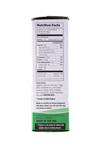 Quinn Snacks Microwave Popcorn - Made with Organic Non-GMO Corn - Great Snack Food for Movie Night {Parmesan & Rosemary, 1 Box}