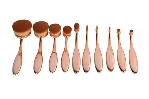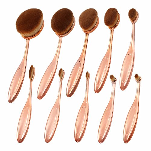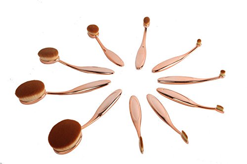 - Perfect 10 pcs set: The oval brushes set covers all of your makeup needs. Makes contouring quickly and easily and spreads your makeup well for face, lips, brows, nose, cheeks, chin, eye in the way you like.
