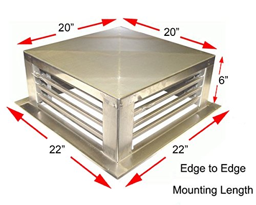 Product Description 304 stainless steel 4-Way Adjustable Metal Diffuser for Evaporative/Swamp Cooler, Cover Hole Size 20" x 20". - 304 stainless steel - Body dimension: 20"W x 20"L x 6"H - 1" width edge at the end of the body for easy installation. See image for details. - 4-way adjustable. 0