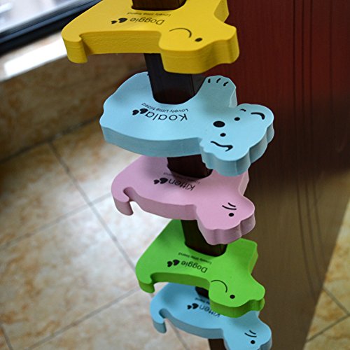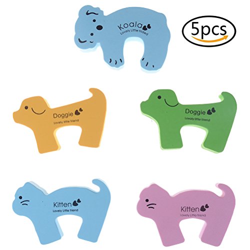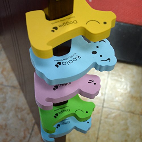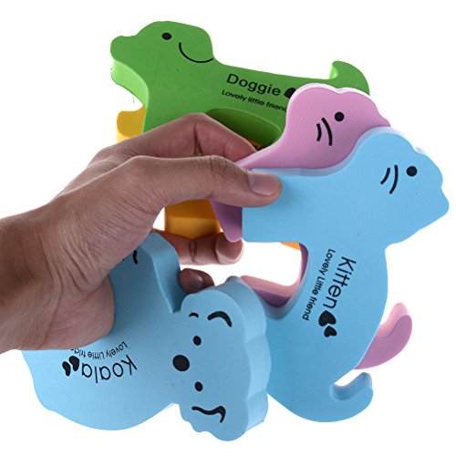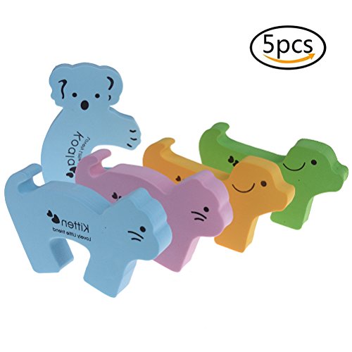 Warning: Not suitable for children under 36 months. You need to clip them on the top edge of doors where children couldn't reach, and it's easy to take them off and put them on. Specifications: Material: foam. Size: approx. 5.3*3.3*0.6inches Color: random. Package includes:5 x Door Stoppers Animal Design 0 |