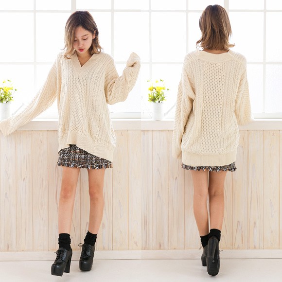 ケーブル編みがアクセントのゆるニット☆