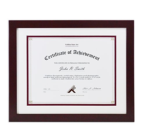 Golden State Art, 11x14 Wood Frame with Double Mat For 8.5x11 Document & Certificates, Real Glass, Mahogany