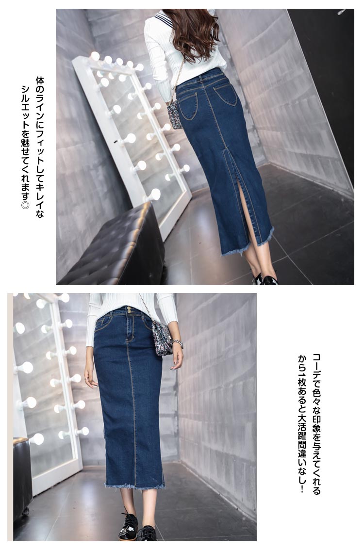 | ヒップラインを美メイクデニムタイトスカート!体のラインにフィットしてキレイなシルエットを魅せてくれます◎コーデで色々な印象を与えてくれるから1枚あると大活躍間違いなし!柔らかなデニム素材でバックスリット入りなので動きやすく楽に穿いていただけます! | |
