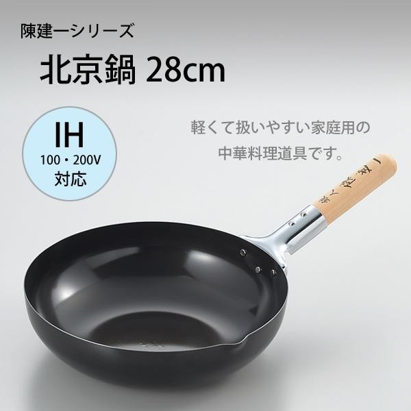 中華の鉄人、御用達。軽くて扱いやすい家庭用の中華料理道具です。 製造国:日本 素材・材質:本体:鉄・シリコン樹脂塗装(1.2mm)ハンドル:天然木 商品サイズ:約φ278×460mm 重量:980g 仕様:対応熱源:IH100・200V、ガス火食洗機:不可容量:3900ml ※サプライヤー直送品 ご注文後5~6営業日後の出荷となります【商品名】陳建一シリーズ IH200V対応北京鍋28cm CK-320