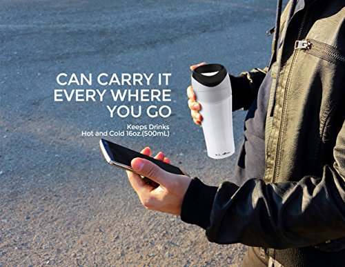 DOUBLE WALL VACUUM INSULATED TECHNOLOGY: This means that your drinks are kept hot or cold as the double wall vacuum technology prevents heat and cold exchange between your travel mug and the environment. It has the ability to keep your hot drinks hot for up to 6 hours and cold drinks cold for up to 24 hours.