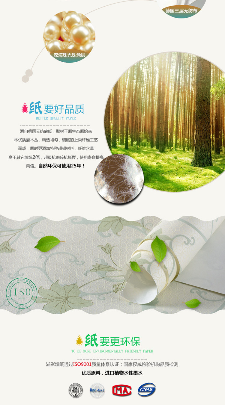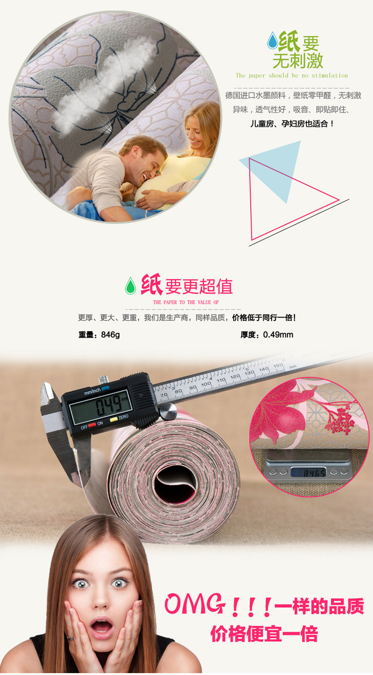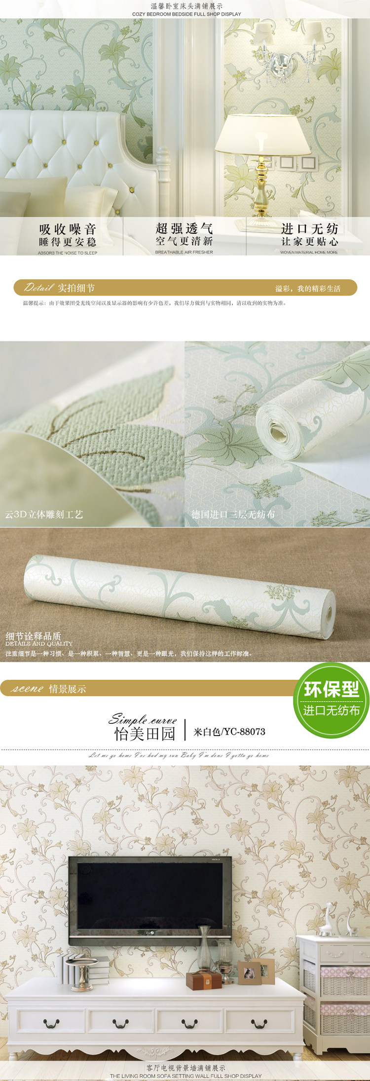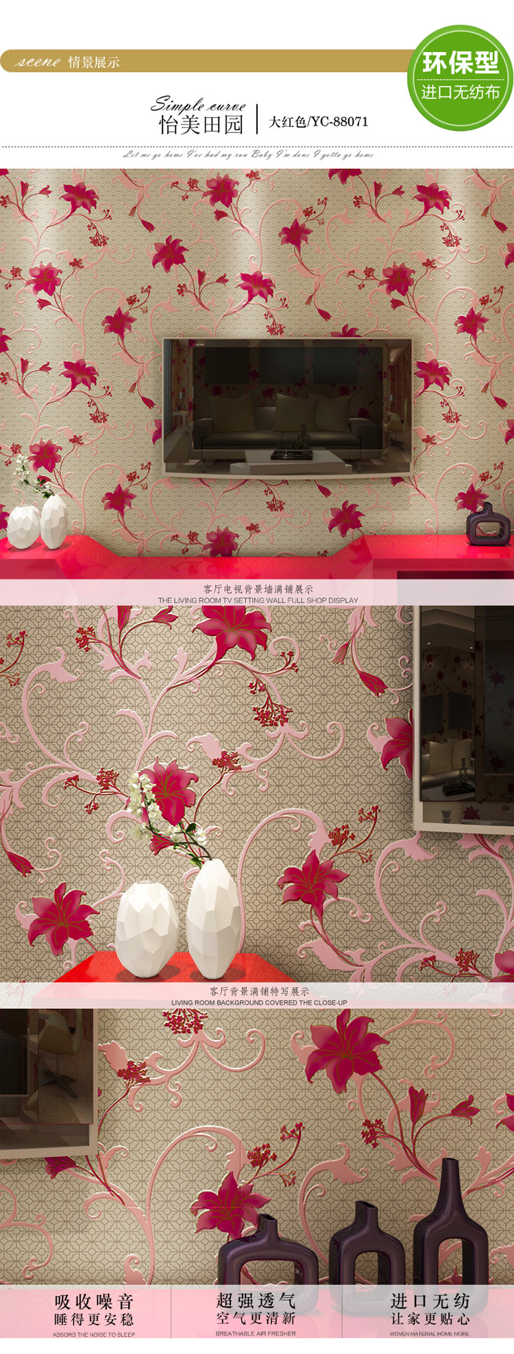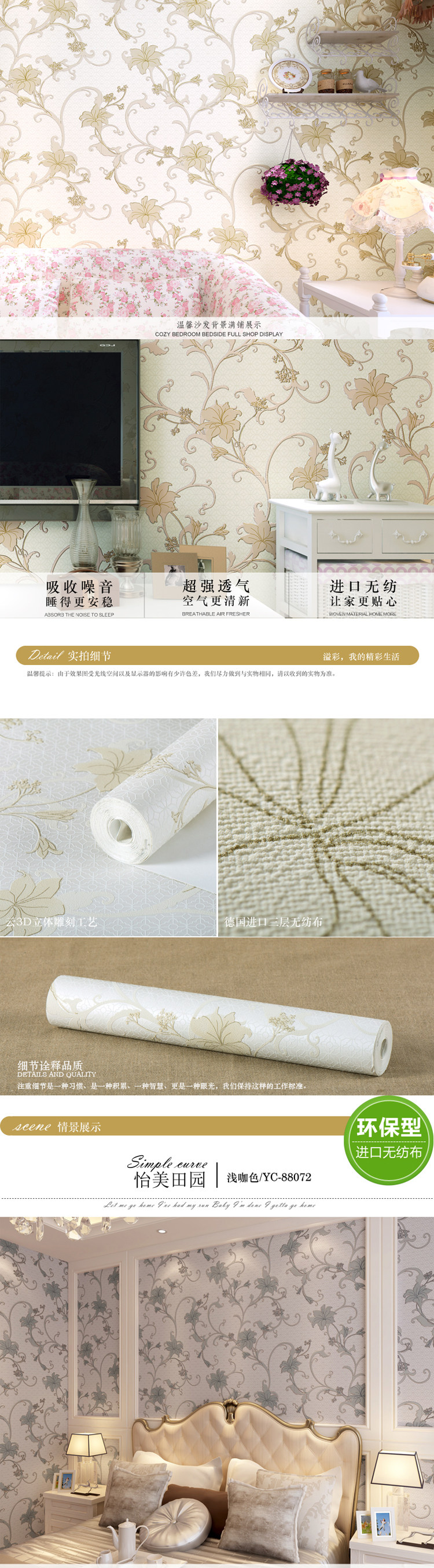 Material :Non-won Fabric wallpaper