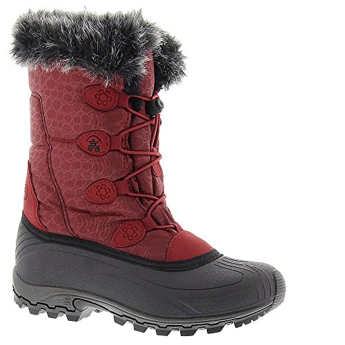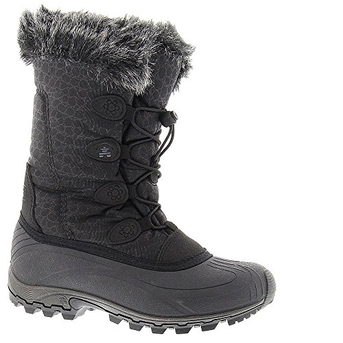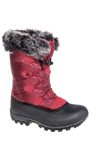 A subtle print, faux fur lining, and embossed lacing graphics add femininity to this techy snow boot.