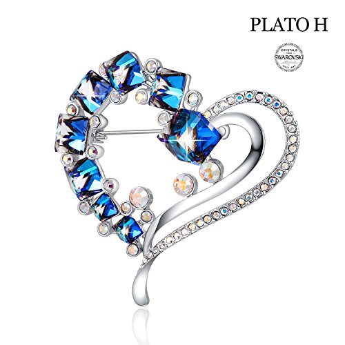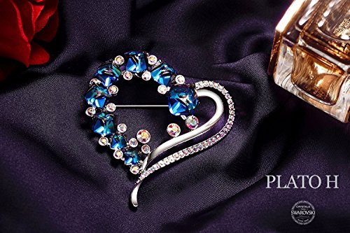 Romantic Heart Brooch with Ocean Blue Cubic Swarovski Crystals Women Best Gifs