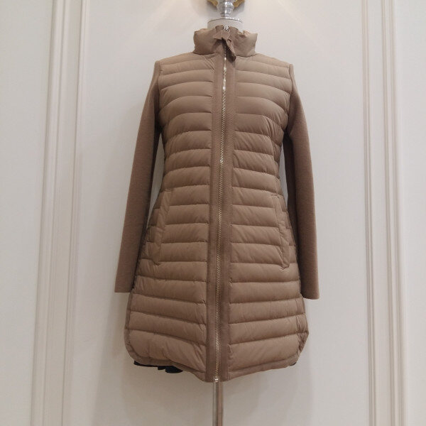 스트레치 원단과 소매 니트원단 패치로 가볍고 활동성이 좋은 다운 코트