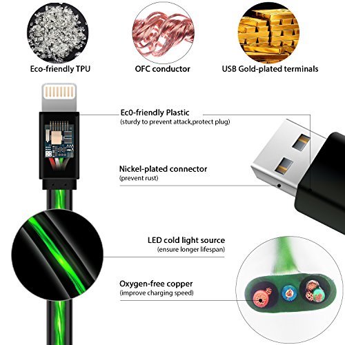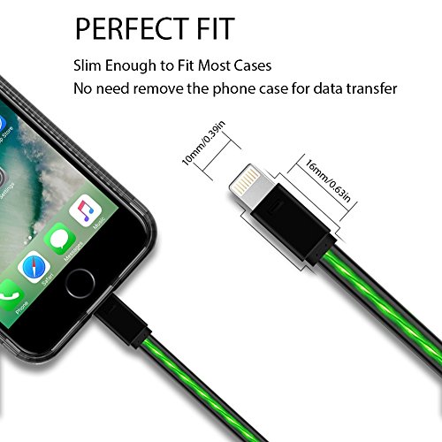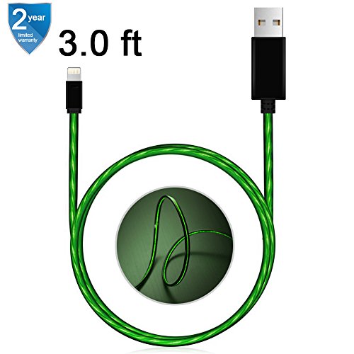 iPhone Charger Areson 3.0ft Visible Flowing 8Pin LED Lightning to USB Cable LED Sync & CHarging Cord Compatible with iPhone 7 7 Plus 6 6s 6 plus 6s plus, iPhone 5 5s 5c,iPad, iPod and More (Green)