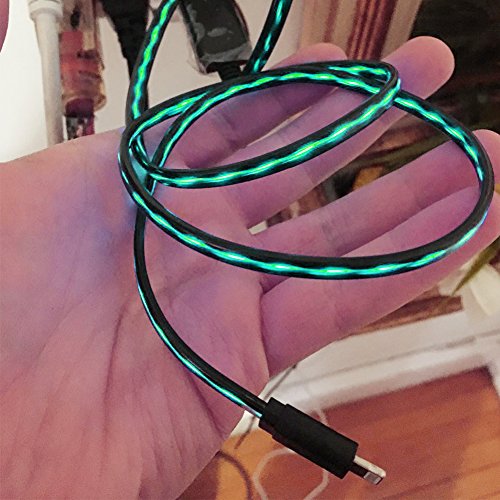- A. Visible Flowing Light - This gorgeous lightning cable features a amazing visible flowing LED light, there will be a beautiful blue light flowing along the cable when plugging it in and charging your device, which makes it a perfect decoration with the room, office or car, and it is easily found at night especially.