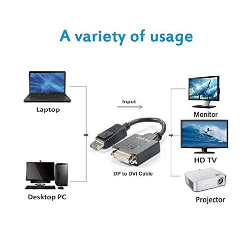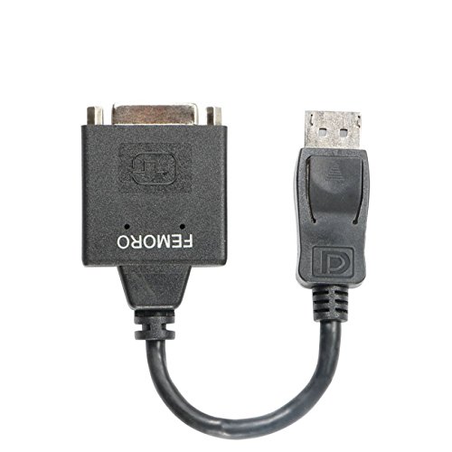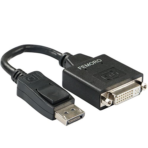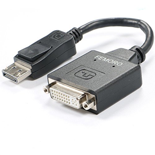 Studio : FEMORO Publisher : FEMORO Binding : Electronics Product Description FEMORO 1080P DisplayPort to DVI Adapter (Black) DP to DVI-I/DVI-D Adapter: Connects a computer with DisplayPort to an HDTV,monitor,or projector with DVI port. Supporting resolution up to 1080P/60Hz(High Definition);Enjoy photos, videos, presentations and games on the big screen. Only transmits video(no audio output via DVI).Easy to use and carry.Just Plug and Play without any installation driver. The DisplayPort cable comes with a plastic cap,so it keeps your adapter clean and protected during transportation.A separate DVI cable is required (sold separately). Features: Extend More Monitor:Connects Display Port to DVI displays enabled desktops and laptops add more monitor Resolution: Supports resolution up to 1080p @60Hz and PC graphics resolutions up to 2048 x 1152 @60Hz The displayport to DVI-I (24 5) adapter compatible with both digital and analog signal, both DVI-D and DVI-I plug can be used on this dp to DVI-I adapter. Easy and Secure Connection. Plug-and-Play.No driver or software installation required! The Displayport connector with latches provides a secure connection,before release button before unplugging Multi Function. DP to DVI converter cable transmits high-definition video from your computer (such as DELL HP Lenovo ASUS Chrombox etc) to a monitor for video streaming; Connect and configure your monitor to Extend Desktop or Mirror Display Specifications: Input: Displayport Output: DVI Female port (24 5 Pin) Resolution: support up to 1920 x 1200 and 1080p (Full HD) Cable Length: 12 in
