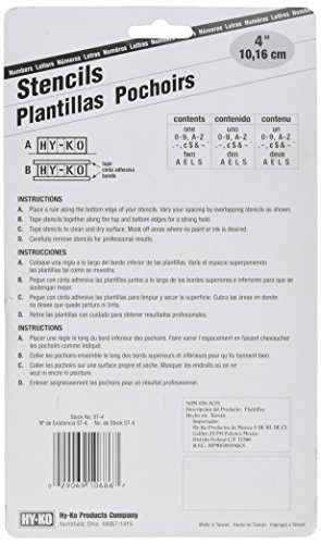 Hy-Ko ST-4 Number & Letter Stencils Reusable, Water Resistant, 4"