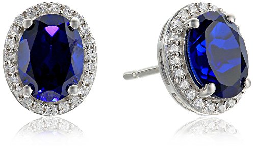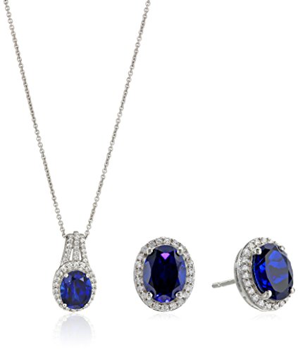Sterling Silver Created Blue Sapphire with Signity Cubic Zirconia 2-Piece Box Set