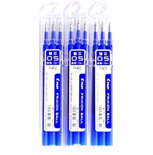 -. Binding : Office Product -. Brand : Pilot -. EAN : 4562498401661 -. Feature : Extra fine point (0.5mm) / Ink color: Blue / Thermo-Sensitive Gel Ink formula disappears with erasing friction / Reasonable set. Total 9 Refills. -. Label : Pilot -. Manufacturer : Pilot -. Model : BC29628 -. MPN : 6000538 -. PackageQuantity : 1 -. PartNumber : 6000538 -. ProductGroup : Office Product -. ProductTypeName : OFFICE_PRODUCTS -. Publisher : Pilot -. Studio : Pilot -. Title : Pilot Frixion Gel Ink Pen Refill 05, Blue(LFBKRF30EF3L), 0.5mm, 3 Refills X 3 Pack/total 9 Refills (Japan Import) [Komainu-Dou Original Package] by Pilot