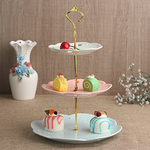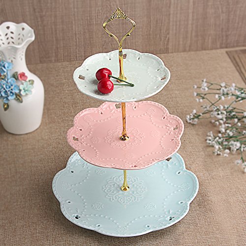 Product Description 3 Tier Round Mixed color Porcelain Cupcake Stand,14.5 inches high.Each cupcake tier, made of high-quality porcelain with smooth hand feel and easy to wash. At the top of the plate diameter:6 Inch; In the middle of the plate diameter: 8 Inch; Diameter of the bottom plate:10 Inch. Simple Assembly and Disassemble:Each tier is connected with each other by solid pillars which have enable the whole tier with strength and stability. Use as a cupcake stand, dessert stand or serve for fruit and other sweet treat.It looks elegant and can decorate table or party. It can be used at all types of events and parties such as tea party, baby showers, graduations, weddings, christmas, thanksgiving or for home decor,show plate for food to impress guests with special visual beauty. 0