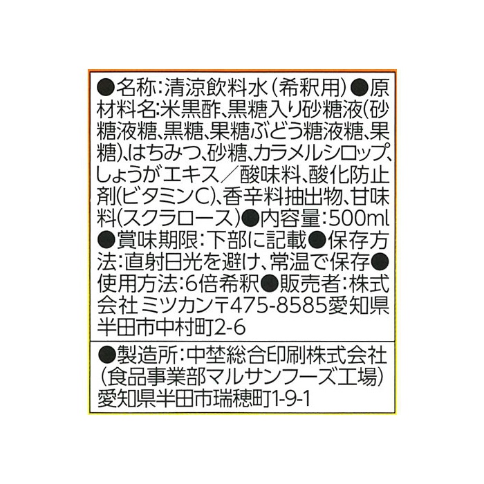 원본상품명:ミツカン はちみつしょうが酢 500ml