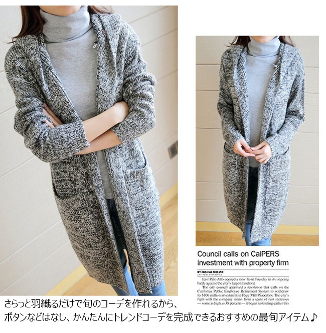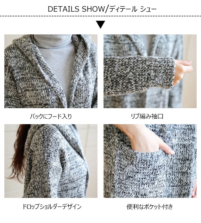 | 商品名 | ニットカーディガン コーディガン 秋冬ニット レディース 秋冬アウター 羽織り フード付き ドロップショルダー 厚手 2017秋冬新作 |