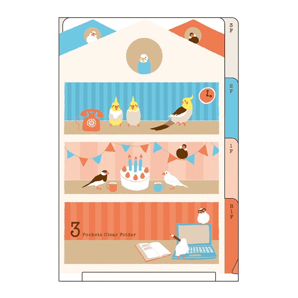 Green 3 pockets clear holder & lt A6 & gt birds pattern A35139006