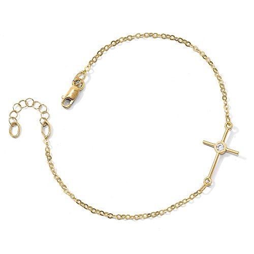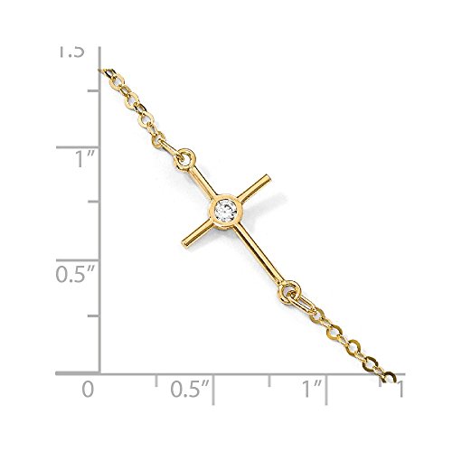 -. Title : Solid 14k Yellow Gold Polished CZ Cubic Zirconia Cross - with Secure Lobster Lock Clasp (12.3mm)