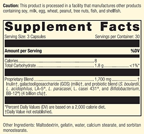 Contains research-supported strains of lactic acid bacteria (Lactobacillus and Bifidobacterium), and Saccharomyces cerevisiae var. boulardii
