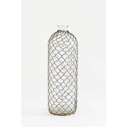 K&K Interiors Glass Bottle with Mesh Netting, 16" x 5"