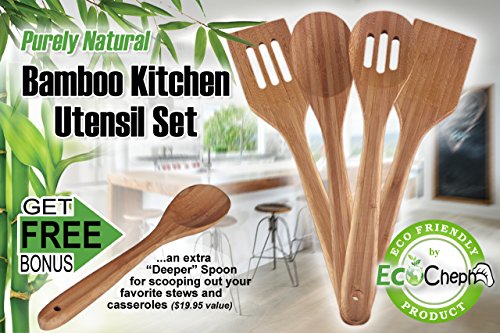 With your EcoChephTM kitchen gadget set these bamboo wooden spoons and spatulas will easily flip your eggs, scoop your favorite casserole and provide you the peace of mind knowing you are serving your family and friends a meal that's free of toxins left by other cooking utensil alternatives.