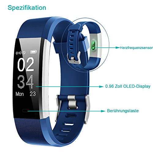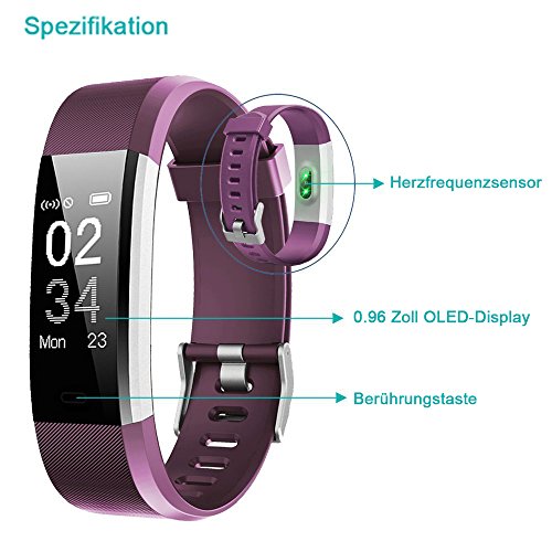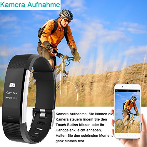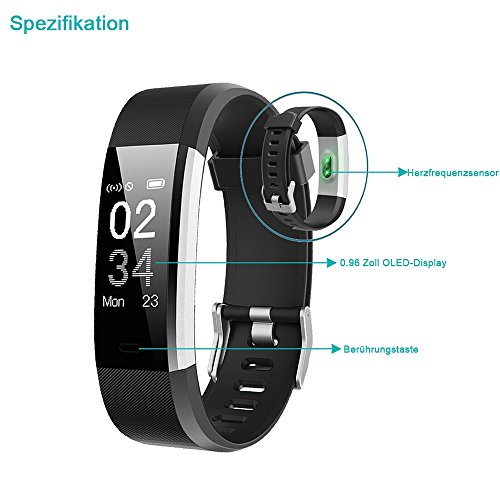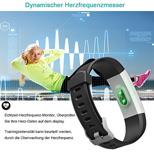 YAMAY Fitness Armband mit Pulsmesser,Fitness Tracker Aktivitatstracker Bluetooth Smart Armband Schrittzahler Uhr mit Schlafmonitor Kalorienzahler Vibrationsalarm Anruf SMS Whatsap