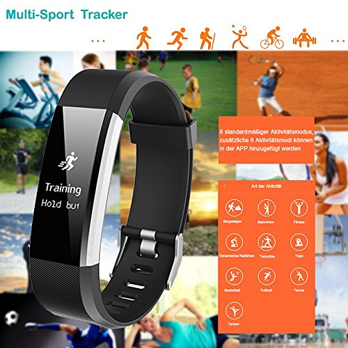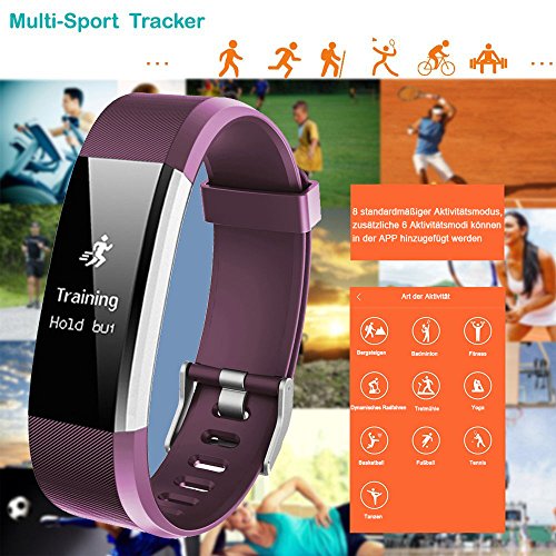 ▶ Neuer Fitness Tracker mit 14 Trainingsmodi ◀ Laufen, Joggen, Radfahren, Wandern, Fitness, Laufband, Basketball, Tennis, Klettern, Badminton, Dynamik, Yoga, Fussball, Tanzen (Achtung: Die ersten acht Modi sind im Armband ausgelegt und voreingestellt und konnen benutzt werden. Andere 6 Modi mussen in der App konfiguriert werden