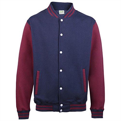 - Feature : 5-7 Day Delivery. / Awdis Varsity jacket - 16 Colours - Sizes XS to 2XL / Contrast sleeves. Knitted collar, cuffs and waistband with stripe details / Press-stud closure. Contrast studs / Hidden ear phone loops