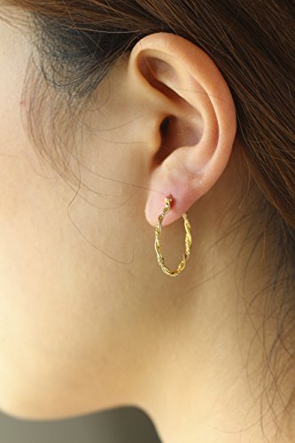 The 14k gold earrings make a wonderful gift idea for wives, girlfriends, moms, coworkers or friends on special occasions such as birthdays, anniversaries and Valentine's day. Each pair of our medium twisted hoop earrings arrives in a small gift box, making them ready to give to that special lady in your life without the need for extra wrapping.