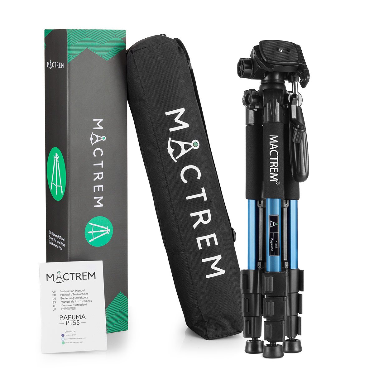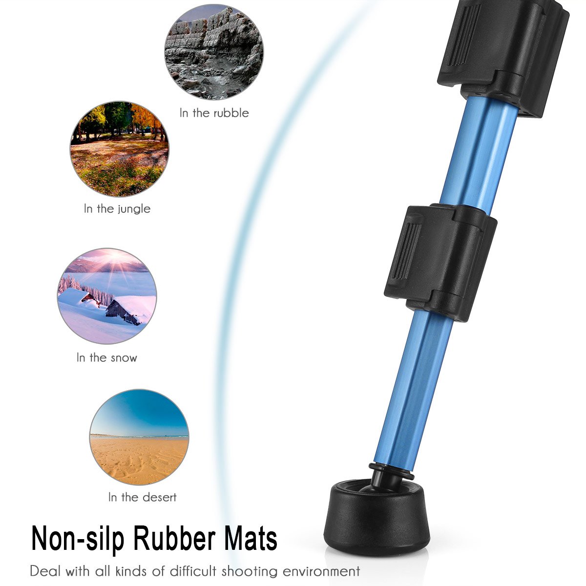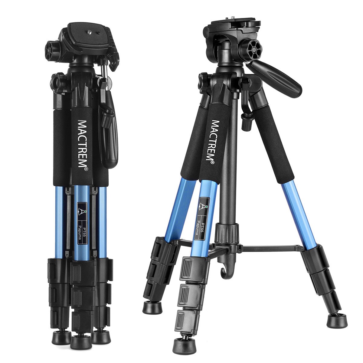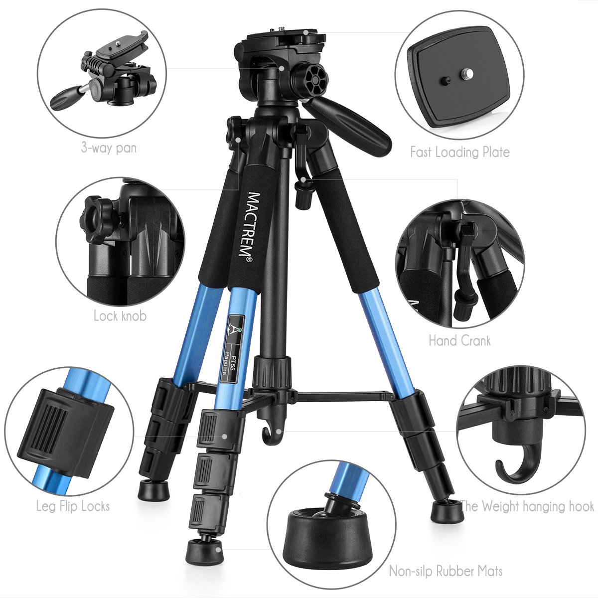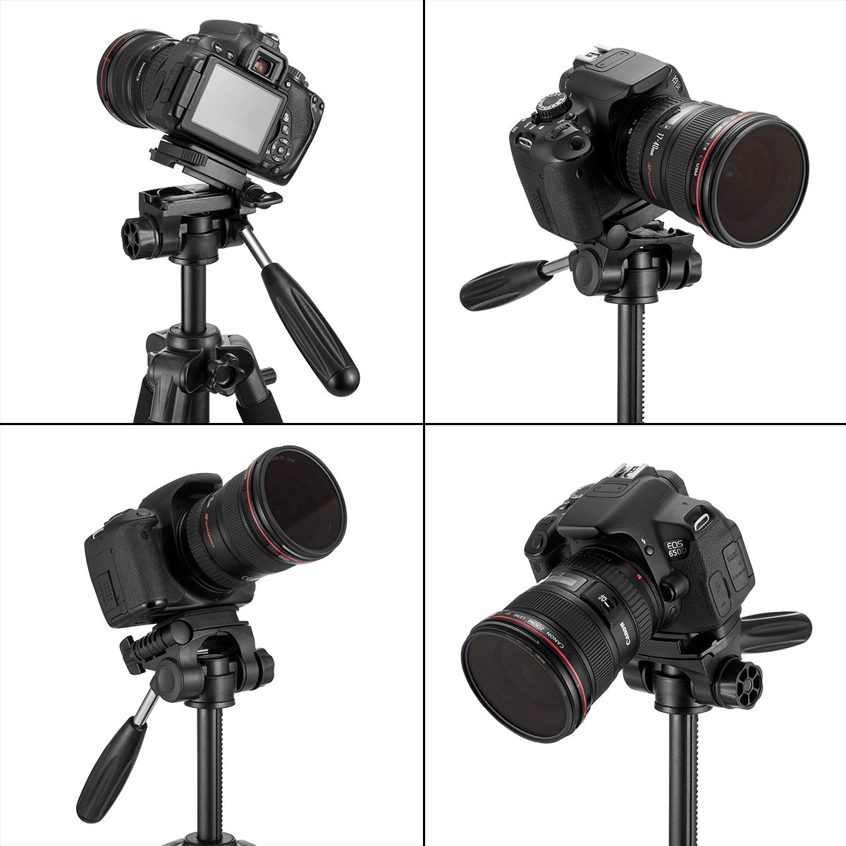 Lightweight aluminum tripod adopts quick shoe which can attach / detach with one touch on the panhead part.