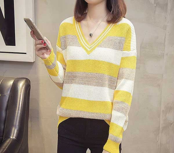 こなれ感のあるボーダー柄ニットトップスです。