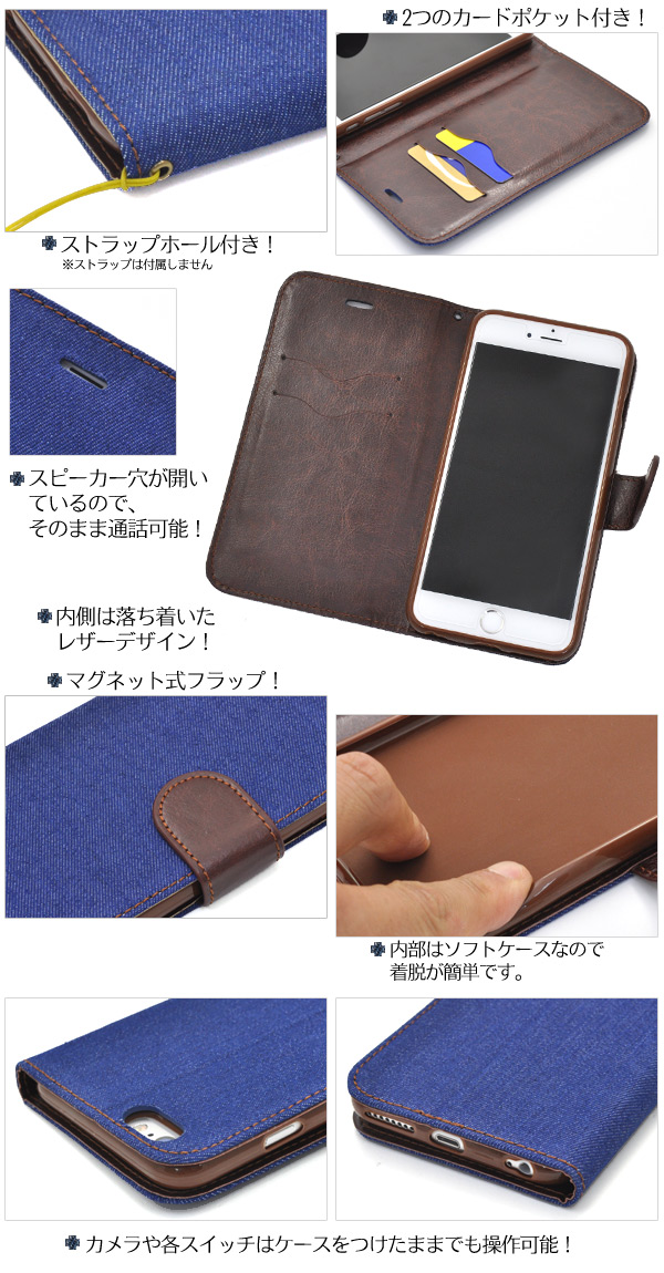 衝撃やキズなどから iPhone 6 Plusを守ります。 内部ケースはソフトケースなので、着脱が簡単です。 背面を折り返すとスタンドとして使用できるので、動画視聴に便利です。 便利なストラップホール付きです。 スピーカー穴が開いているので、カバーを閉じたまま通話が可能です。 横開きタイプなので、手帳のように使うことができます。 また、内側にカードポケットが2つ付いています。 ※ iPhone 6 Plusは付属しません。 ※ライセンス商品ではありません。 | ||||||||