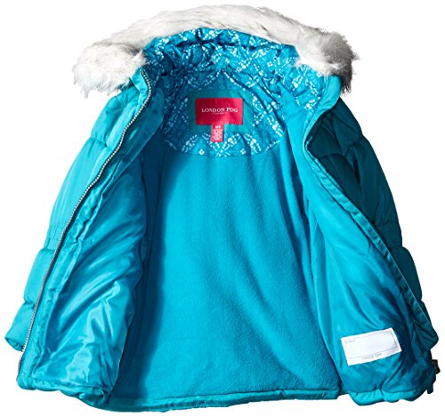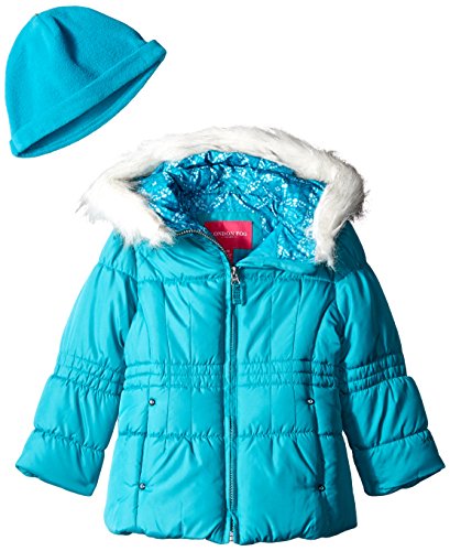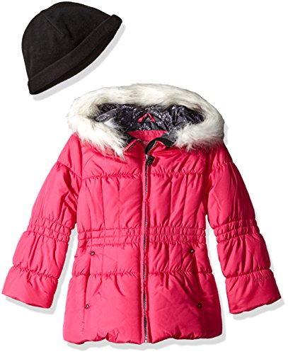 Heavyweight quilted puffer jacket with fleece hat and rhinestone detail