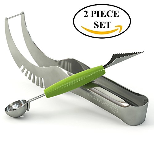 OFFER Quantahome Watermelon slicer & Melon Baller with De-corer. Apple Corer, Divider & cutter, Wedger-Easy Grip Stainless Steel Tongs. Perfect Fruit Bowl Mess Free - Dishwasher Safe- Juicing Ebook
