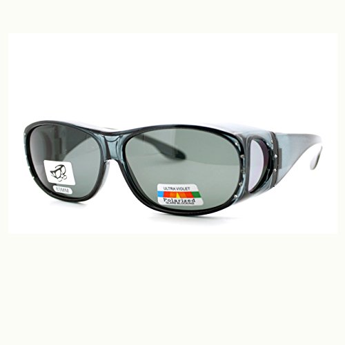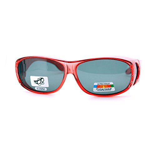 Womens Polarized Fit Over Glasses Rhinestone Sunglasses Oval Rectangular Gray