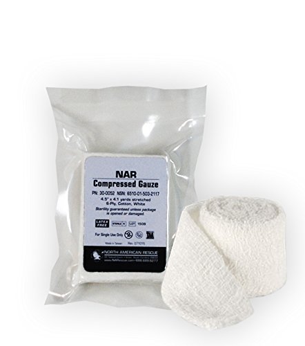-. Feature : North American Rescue provides this 4.5" x 4.1 yards of 6-ply sterile, compressed gauze, vacuum packed for minimum cubic displacement. / NSN# 6510-01-503-2117