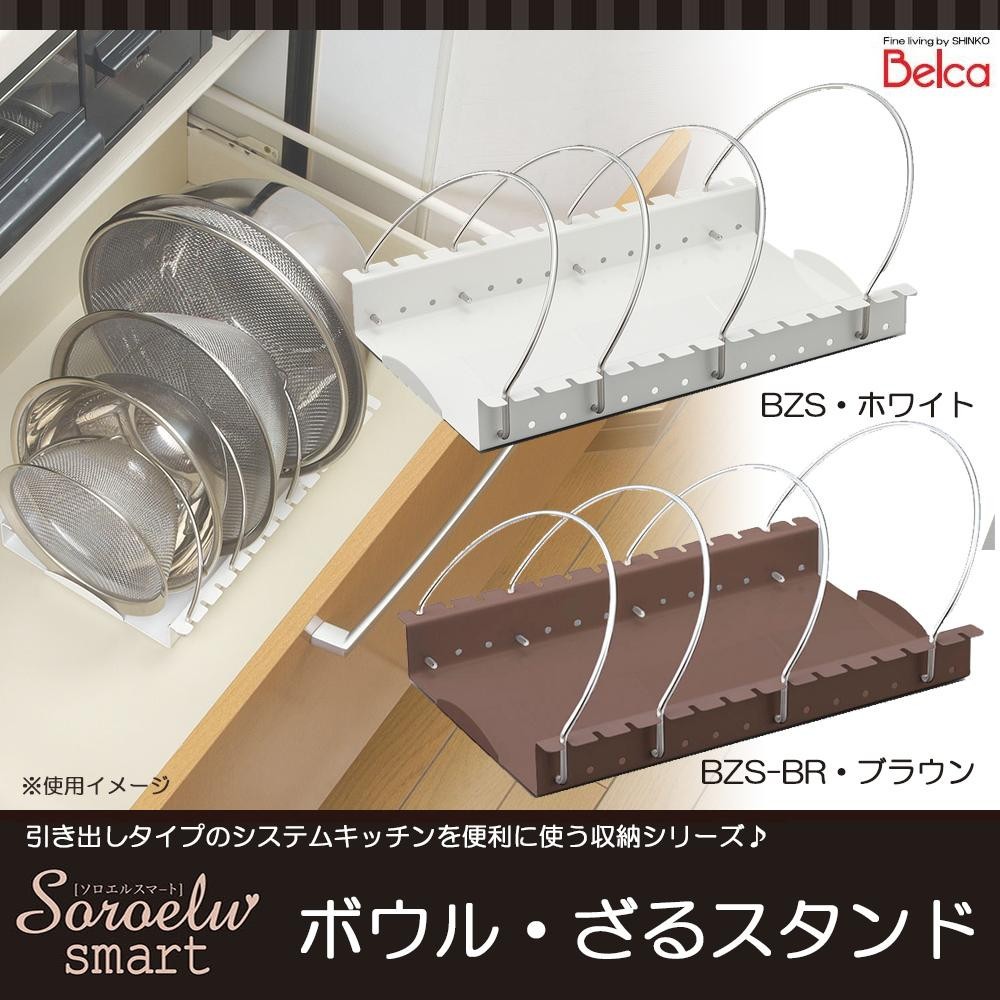 ボウルやざるを出し入れしやすく収納します。裏面すべり止め付き☆