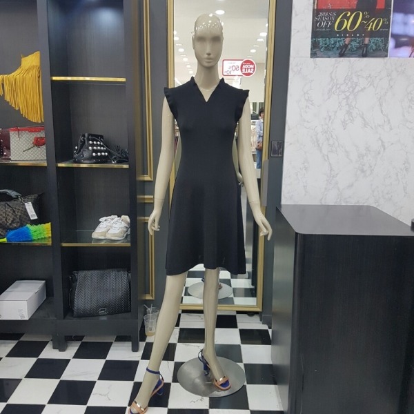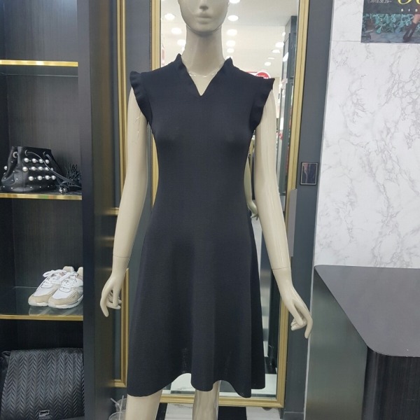 넥과 소매 끝에 프릴 장식이 있어 귀여우면서 여성스럽고 기장감이 있어 편하게 착용 가능한 원피스입니다