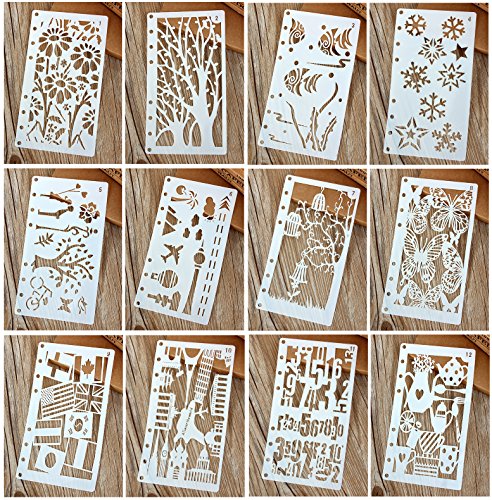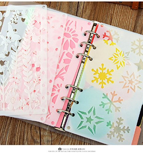 - 12 DIFFERENT STYLES LOOSE LEAF STENCILS - The drawing painting stencils have diverse appearances and with bulks of small hollow patterns, you can draw lots of cute patterns even if with poor drawing skills. Loose Leaf design is easy to use or store in your A6 Notebook