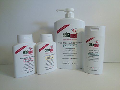 -. Feature : All products are soap-free and are formulated to match your skin with pH 5.5 / Face and body wash: 33.8 ounces / Everyday shampoo - 6.8 ounces / Repair conditioner - 6.8 ounces (200 ml) / Moisturizing lotion - 6.8 ounces (200 ml)