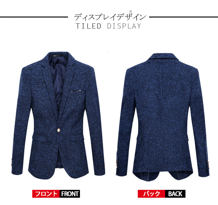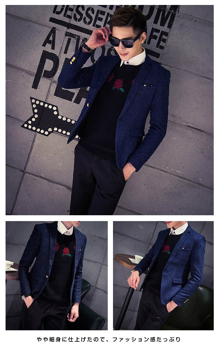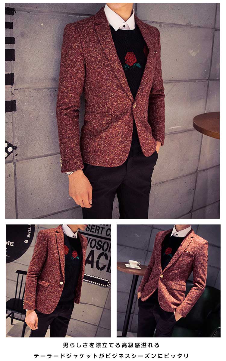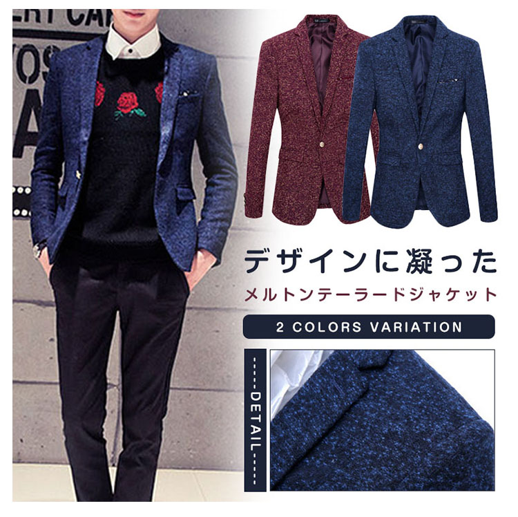 | デザインに凝ったメルトンテーラードジャケット男らしさを際立てる高級感溢れるテーラードジャケットがビジネスシーズンにピッタリ秋冬にバッチリのメルトン生地が暖かく、上品さ漂うやや細身に仕上げたので、ファッション感たっぷり | |
