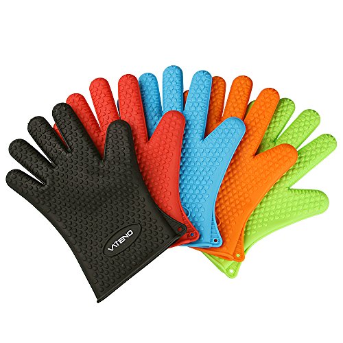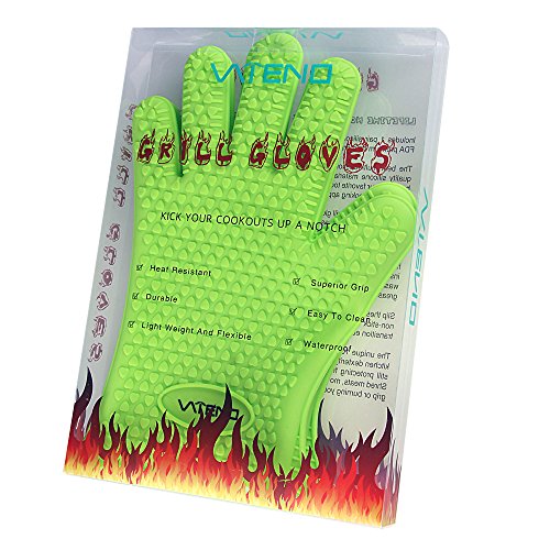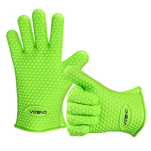 # Vateno Grill Gloves # Heat Resistant Silicone BBQ Gloves Used in Kitchen Handling High Temperature Food ★ Best Protection for Oven, Grill, Baking, Cooking, Smoking and At the Campsite ★ Far More Protection and Versatility Than Oven Mitts ★ Five-fingered