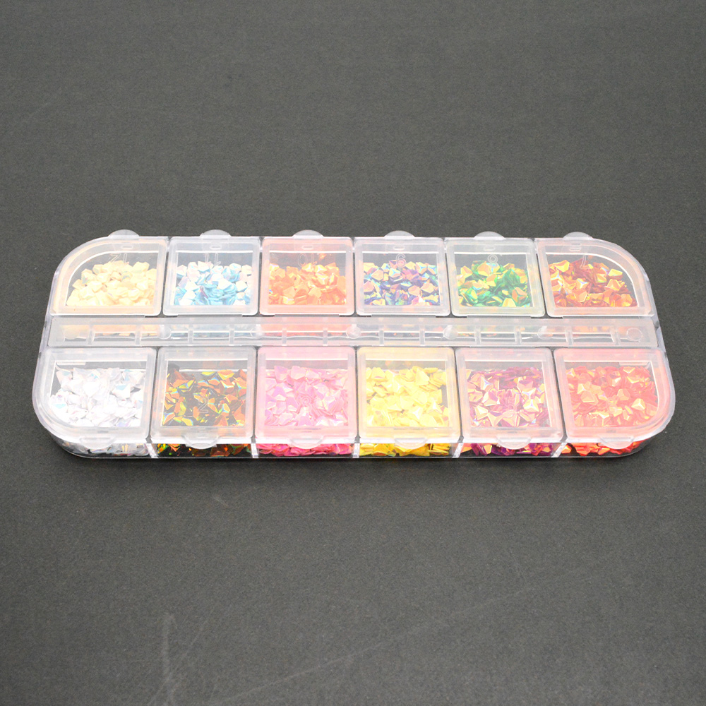 ■商品説明:12色の楕円パーツが入っています。キラキラパーツでかわいいデザインが!レジンアクセサリーやネイルにも大活躍です♪