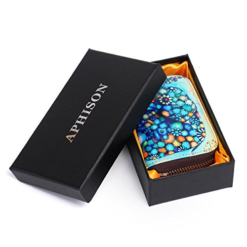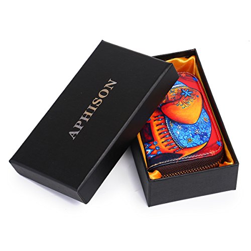 -. Title : APHISON Credit Card Case Wallet Women's Leather Zipper Blocking Painting Card Clutch Holder Purse