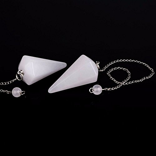 Natural White Jade Gemstone Rock Crystal Hexagonal Pointed Reiki Chakra Pendant Pendulum
