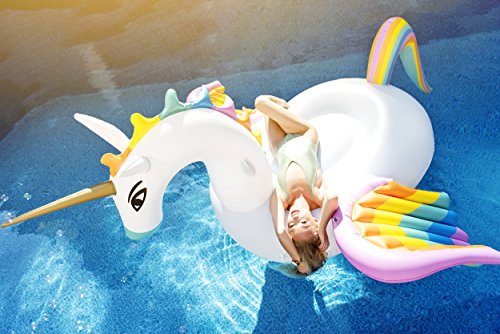 Studio : Captain Floaty Publisher : Captain Floaty Binding : Toy Product Description The giant inflatable pegasus float is the ultimate luxury pool toy accessory! Nice and big with plenty of space to relax. It is ideal for children, kids, teenager and adults to have great fun in a family gathering or party time. Features a large surface area, you can lay on the unicorn and relax in the sunshine, or sit down and ride with a family or friend! Standing out in the pool with this bright white color and two pieces of rainbow which is great for soaking up the sun this summer! Makes the perfect birthday gift or christmas present for young women, girls, or yourself! 0