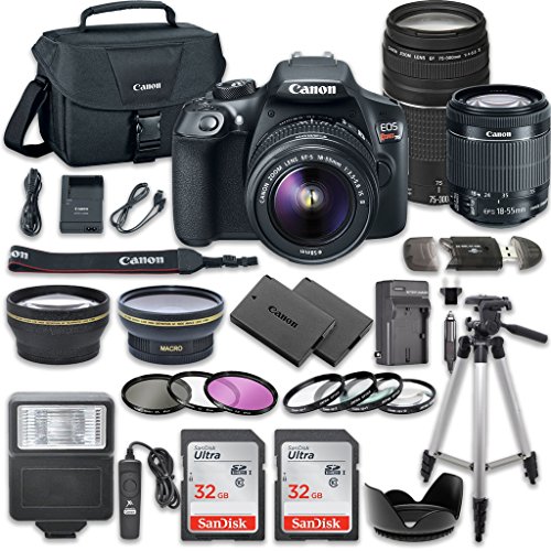 Canon EOS Rebel T6 DSLR Camera Bundle with Canon EF-S 18-55mm f/3.5-5.6 IS II Lens + Canon EF 75-300mm f/4-5.6 III Lens + 2pc SanDisk 32GB Memory Cards + Accessory Kit